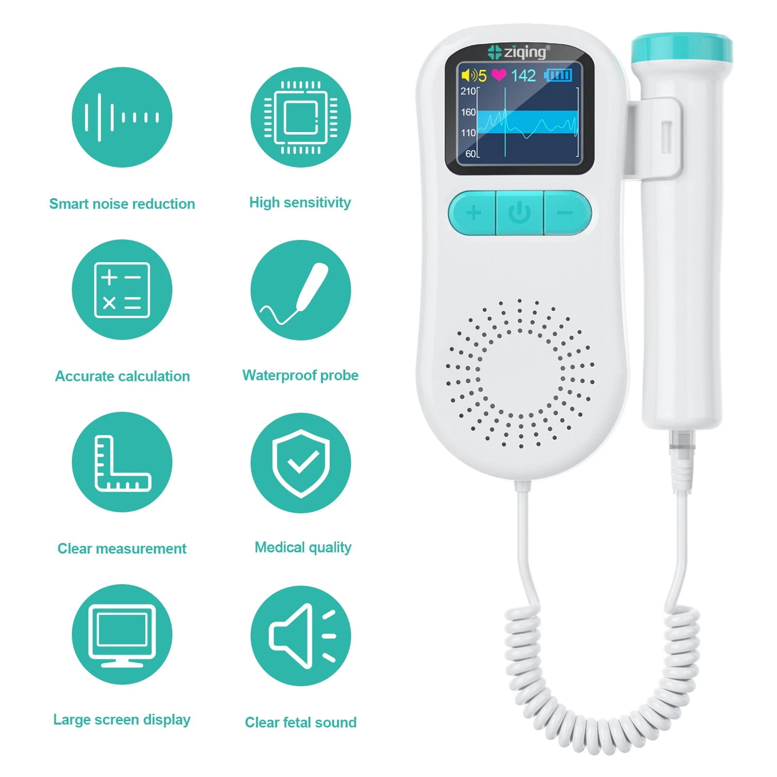 - Zakres FHR: 50 ~ 220bpm