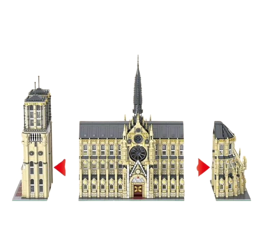 Odwzoruj jedno z najbardziej znanych dzieł architektury gotyckiej – Katedrę Notre Dame w Paryżu – dzięki wyjątkowemu zestawowi konstrukcyjnemu składającemu się z 8225 elementów! Ten imponujący model o wymiarach 64 x 25,5 x 51 cm to doskonały wybór dla pasjonatów architektury, historii i budowania z klocków.