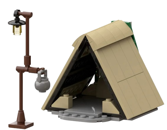 Klocki dla dzieci zabawka zestaw akcesoriów obóz nad jeziorem namiot z latarnią 97