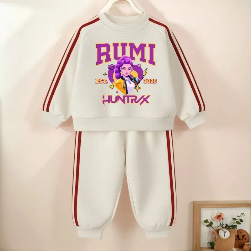 Komplet Dresowy Dziecięcy K-POP HUNTRX – Dwuczęściowy Zestaw: Bluza i Spodnie z Paskami – Wiosna 2026