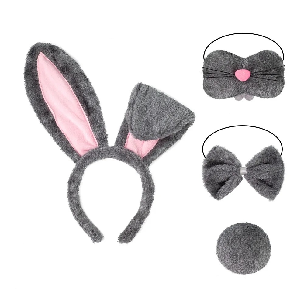 Maska Królika: Miękka maska na twarz z noskiem i wąsami, która dopełnia look.