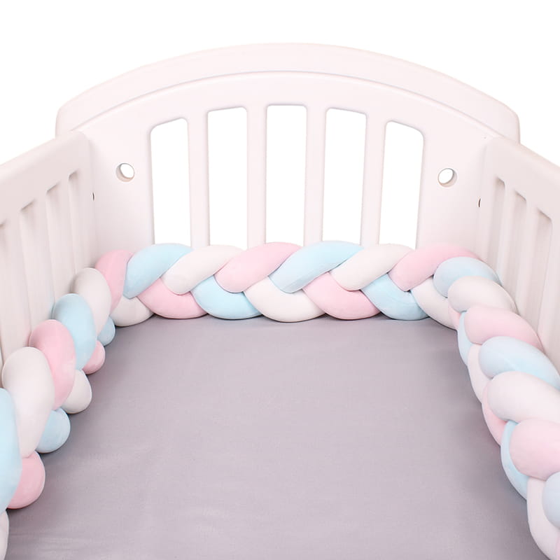 Ochraniacz dla niemowlaka różowo beżowo biały warkocz łóżeczko