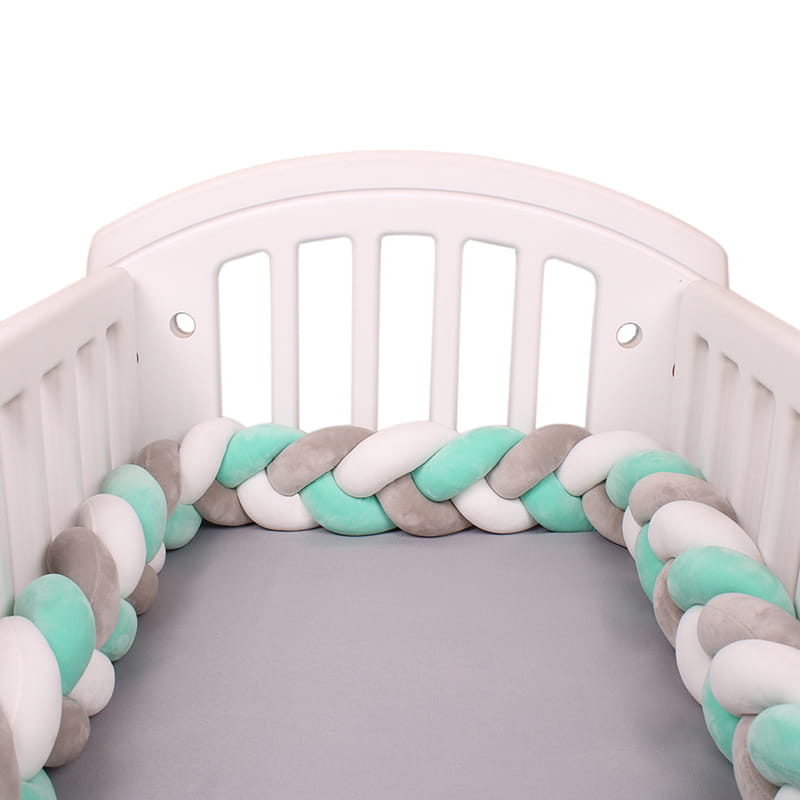 Ochraniacz dla niemowlaka zielono biało beżowy warkocz łóżeczko