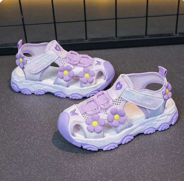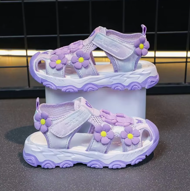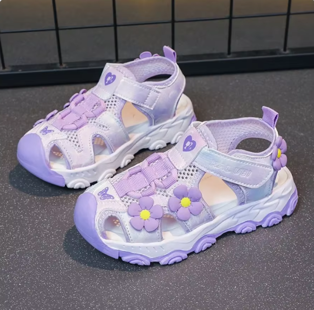 Modne i wygodne sandały dziecięce w odcieniach fioletu z uroczymi kwiatkami to idealny wybór na lato dla każdej dziewczynki. Zaprojektowane z myślą o komforcie i bezpieczeństwie, świetnie sprawdzą się podczas codziennych aktywności – spacerów, zabawy czy wakacyjnych wyjazdów.
