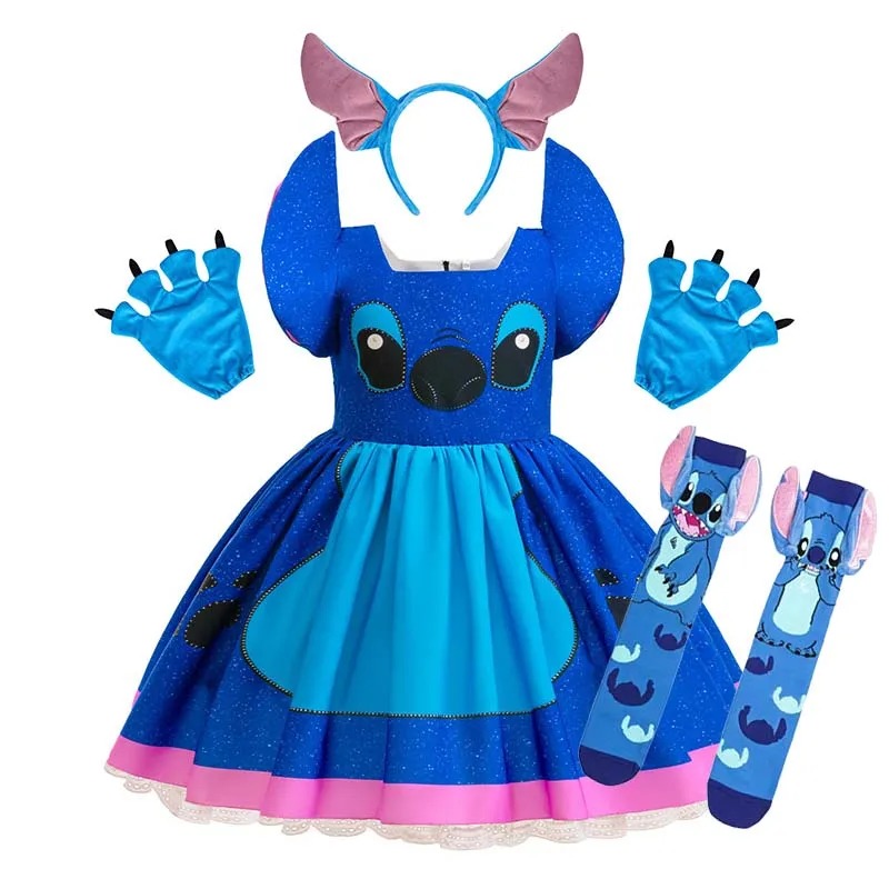 Urocza Sukienka Kostium Stitch dla Dziewczynek Zestaw w 4w1