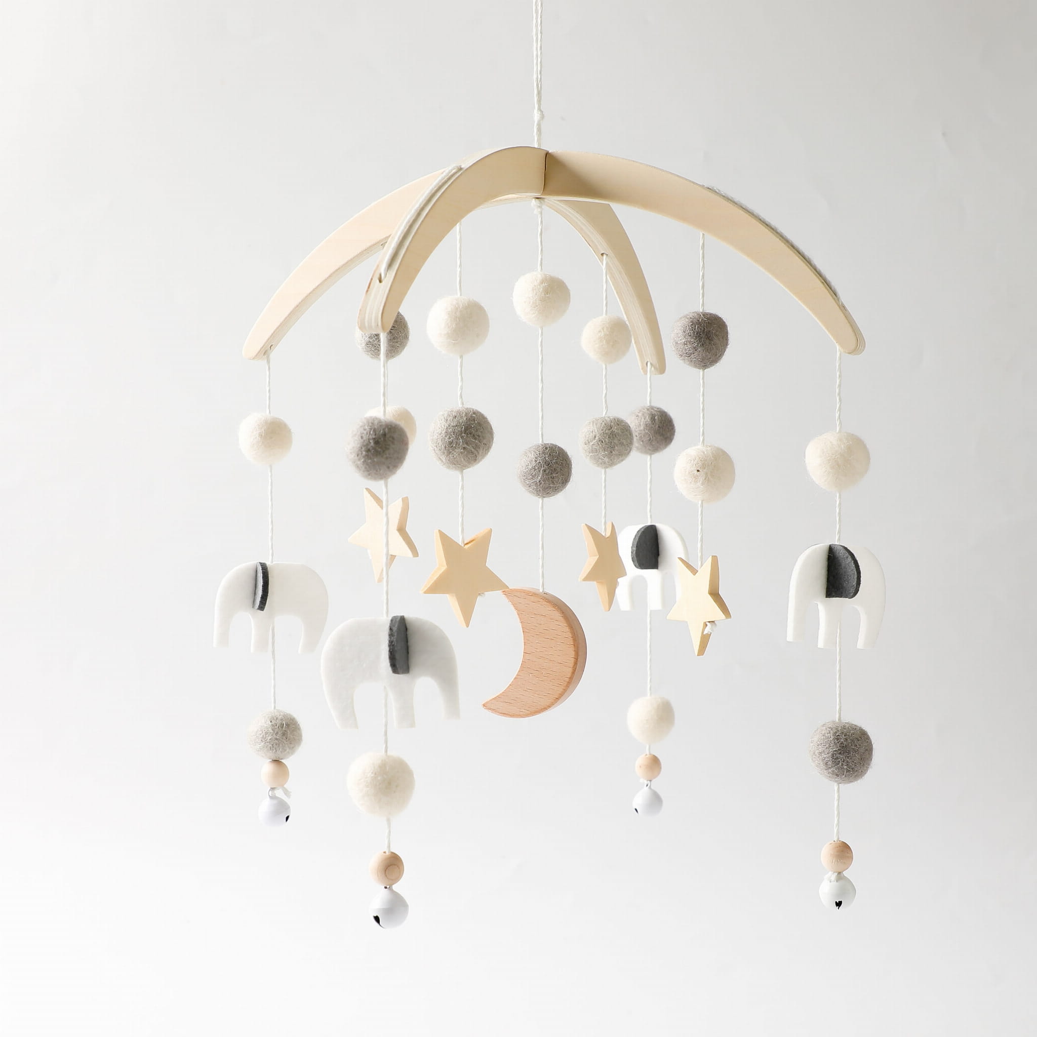 Zawieszka nad łóżeczkiem dla bobasa szczęśliwe słoniki filcowe