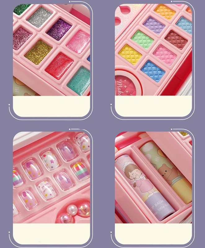 Twoja córeczka podkrada Ci szminkę? Czas na jej własny, w pełni bezpieczny zestaw kosmetyków dla małych dziewczynek! Ten uroczy różowy kuferek to kompletny salon piękności, który pozwoli dziecku na kreatywną zabawę w naśladowanie mamy, bez obaw o zniszczenie Twoich ulubionych paletek.
