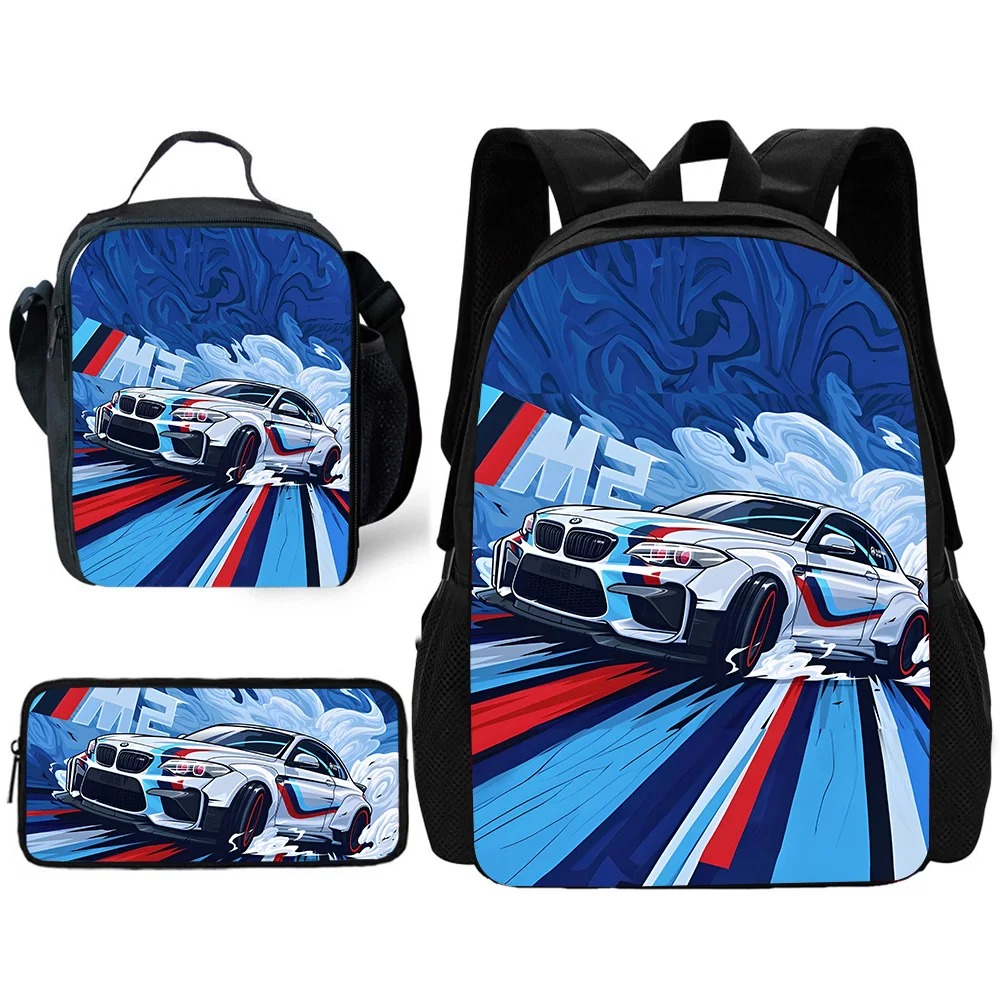 Zestaw Szkolny 3 w 1 Sportowe Samochody dla Chłopców Plecak Piórnik i Lunch Box