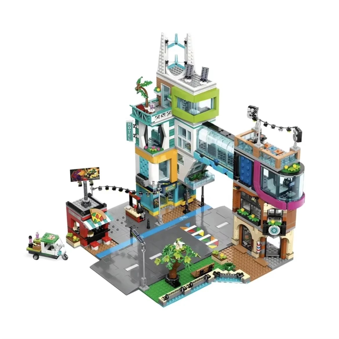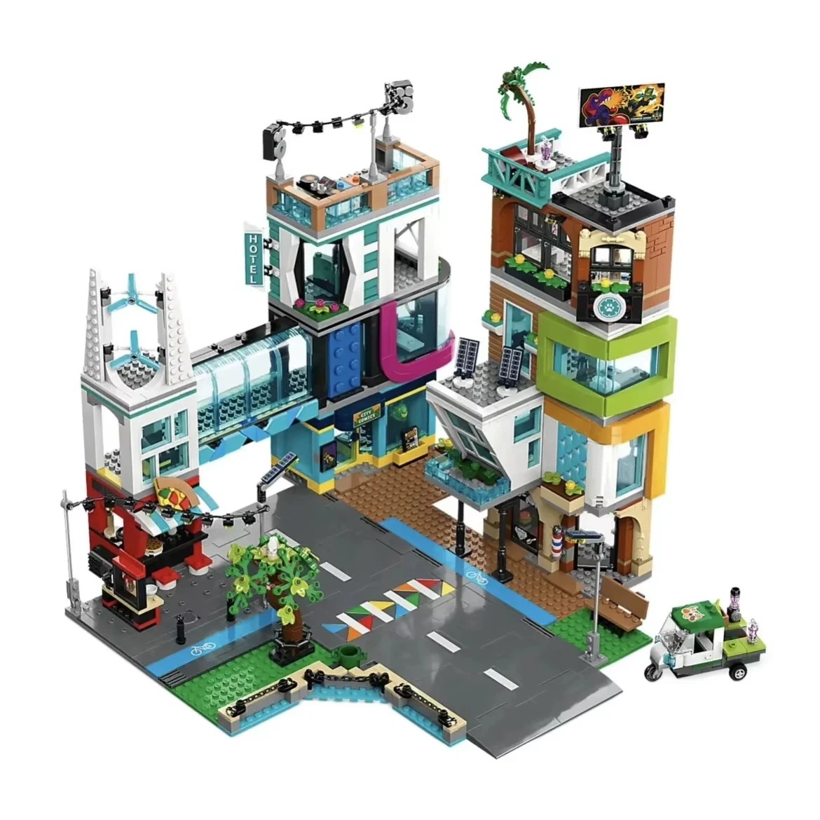 Stwórz tętniące życiem centrum miasta dzięki temu ogromnemu zestawowi klocków. Zestaw zawiera ponad 2000 elementów, co pozwala na zbudowanie wielofunkcyjnego kompleksu budynków. Znajdziesz tu wszystko, od pizzerii i salonu fryzjerskiego, po gabinet weterynaryjny, księgarnię komiksową oraz hotel. Zestaw zawiera także 14 figurek, które dodają życia i dynamiki. To idealny prezent dla dzieci, rozwijający wyobraźnię i umiejętności budowania.