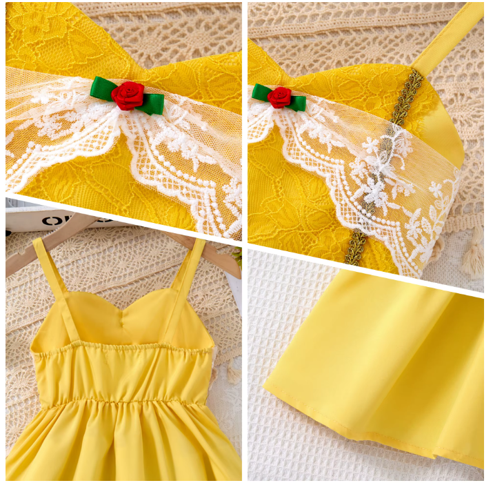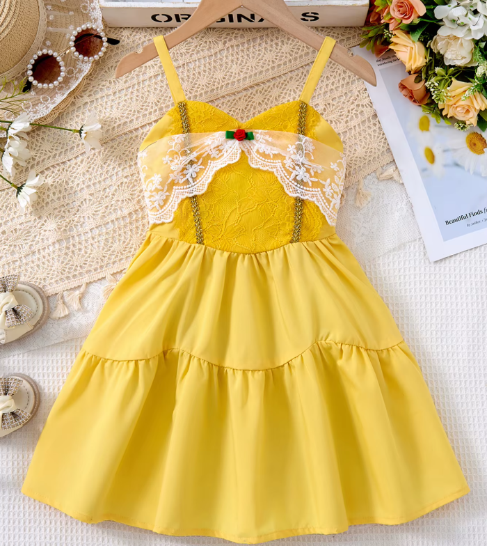 Żółta Sukienka dla Dziewczynki Inspirowana Bellą Kostium Księżniczki z Różą